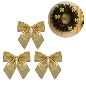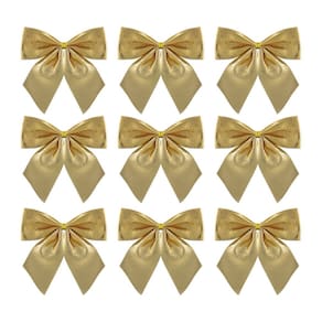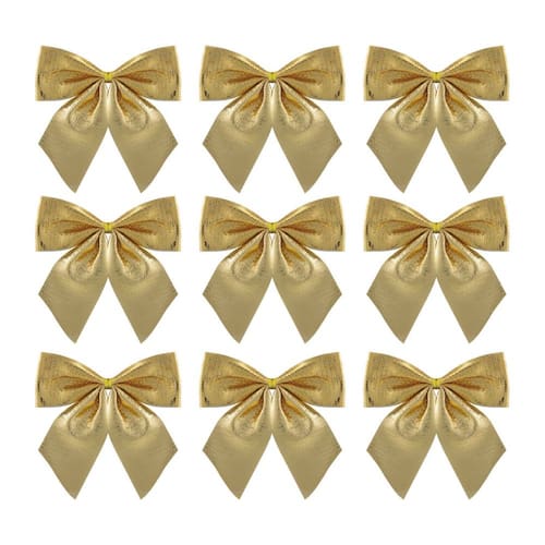 Kit 9 Laços Natalinos Dourado Brilho Suave 10x9cm – Ideal para Árvore de Natal, Guirlandas e Arranjos