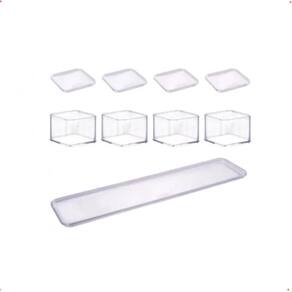 KIT CONTÉM: 4 tampas, 4 potes, 1 bandeja. 9 peças