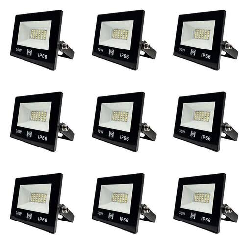 KIT COM 9 REFLETORES LED 30W IP66 Branco Frio 6500K | Iluminação Externa Potente e Durável