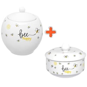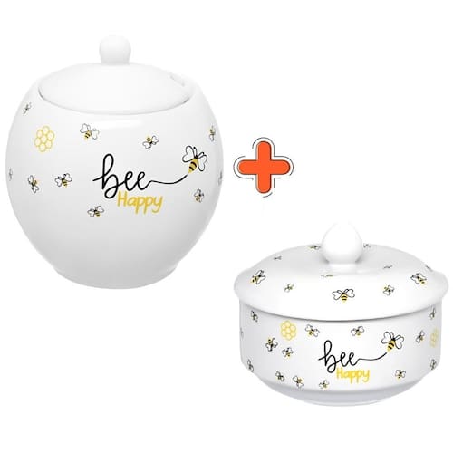 Informações Adicionais: • Marca: Hauskraft • Linha: Abelhinha Bee Happy • Validade: Indeterminada • Tamanho Aproximado da Caneca: 9,5 x 8cm Ø • Tamanho Aproximado da Manteigueira: 9 x 10cm Ø • Peso Aproximado da Caneca: 0,285g (Cada) • Peso Aproximado da Manteigueira: 0,380g • Tipo de Produto: Kit Abelhinha Bee Happy Açucareiro com Colher 350ml e Manteigueira 10cm em Porcelana Branca • Cor: Branco Estampado • Material do produto: Porcelana • Capacidade do Açucareiro: 350 ml • Conteúdo da Embalagem: 2 Unidade • Garantia: 90 dias contra defeito de fabricação • Observação: As cores dos produtos podem sofrer variações em função da características do monitor e do ambiente durante a visualização.