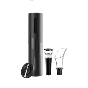 Kit Abridor De Vinho Elétrico Saca Rolhas Saca rolhas elétrico com suporte cortador de lacre. Parte superior emborrachada e parte inferior acrílica, possui compartimento no verso para 4 pilhas AA não acompanha pilhas , Abridor automático de vinho que remove a rolha em 6 segundos. Basta colocar o abridor de vinho na garrafa e pressione o botão para baixo. O parafuso entrará na rolha. Quando o abridor parar, a rolha está fora da garrafa. Conjunto de abridores de vinho vem com ferramentas completas: - Aerador de Vinho - Cortador de rótulo - Rolha de para garrafa Ótima opção de presente de Natal para famílias e amigos.