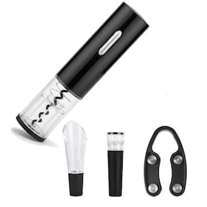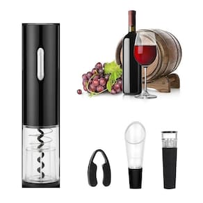 Kit Abridor de Vinho Saca Rolha Elétrico Automático sem Fio movido à pilha com 3 Acessórios