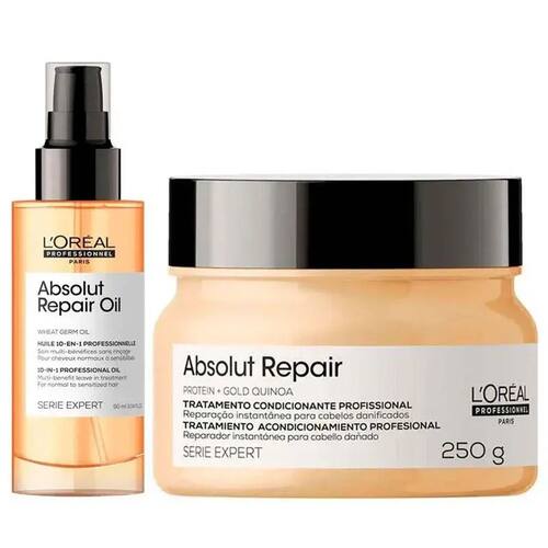 Modo de uso: Após lavar o cabelo com shampoo, se achar necessário, aplique o condicionador. E então, aplique a máscara pelo comprimento e pontas. Massageie mecha a mecha, deslizando as mãos no sentido do crescimento do cabelo, com o movimento de enluvá-lo. Espalhe bem. Deixe agir no cabelo por 3-5 minutos. Em seguida, enxágue completamente. Tecnologia: GOLD QUINOA + PROTEÍNA: Tecnologia rica em quinoa dourada: possui estrutura interna com 9 aminoácidos essenciais que reparam os fios(córtex). Além disso, tem ação antioxidante da vitamina E, que nutre e protege os fios dos danos externos devido à presença do complexo B. PROTEÍNA DE TRIGO HIDROLIZADA: Proteína vegetal que sela as cutículas, retendo os nutrientes e a água dentro da fibra, mantendo a hidratação dos fios. Cabelos finos e danificados? O Óleo 10in1 Absolut Repair Gold Quinoa foi desenvolvido especialmente para cabelos danificados! Ele promove um resultado de fios nutridos, brilhosos e leves. Óleo com toque leve para cabelos normais a sensibilizados. Seus principais ingredientes, a Quinoa Dourada e Proteína Hidrolisada de Trigo, criam um filme protetor que mantém as cutículas seladas, retendo as propriedades restauradoras dentro da fibra capilar. Graças a sua tecnologia de co-emulsão, suas moléculas são 50% menores que os tracionais. Com isso, os ingredientes ativos penetram profundamente na fibra, formando um filme fino e homogêneo e aperfeiçoando a superfície do cabelo.