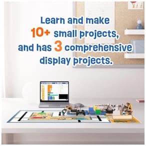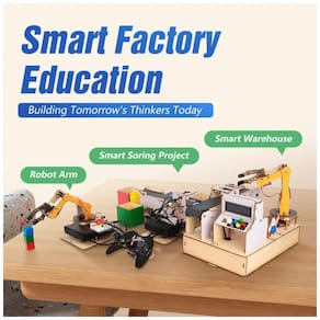 Conteúdo da embalagem: Módulos e estruturas para os 3 projetos de fábrica inteligente, placa ESP32, acessórios de montagem, cabos e acesso a tutoriais on-line (slides, aulas e códigos de exemplo)