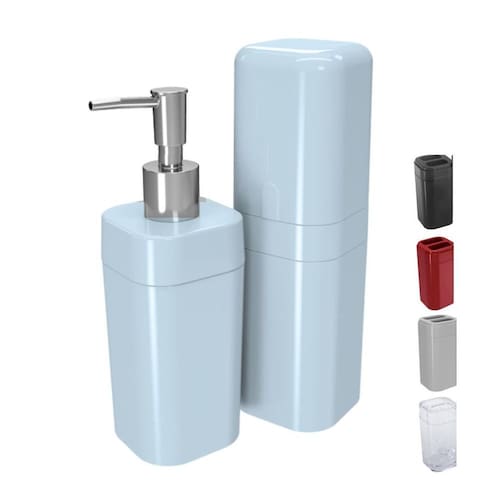 Material Poliestireno Linha Banho Splash Tipo de Produto Banho Composição 01 Porta Sabonete Líquido 01 Porta-escova com Tampa Splash Marca: Coza/Brinox