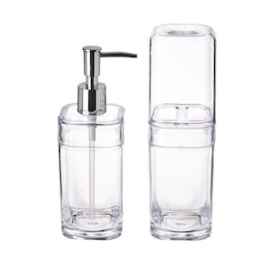 Material Poliestireno Linha Banho Splash Tipo de Produto Banho Composição 01 Porta Sabonete Líquido 01 Porta-escova com Tampa Splash Marca: Coza/Brinox