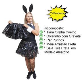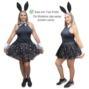 Kit Acessório Fantasia Coelha: Saia Tule + Meia Arrastão + Orelhas + Colarinho + Punhos = 5 Produtos. Combinação única de acessórios que vai complementar a sua fantasia e o seu visual, adicionando um toque de brilho e glamour a qualquer festa ou evento. Ideal para festas à fantasia, carnaval ou apresentações teatrais. Kit composto por: Saia de tule em tamanho único, com elástico na cintura que se estende até 47 cm, cor preta, podendo ser lisa ou com estampas de coração metalizados. Devido ao alto giro, não é possível a escolha do modelo da saia, enviaremos conforme disponibilidade de estoque. A saia atende até a numeração 46. Meia calça arrastão em trama larga na cor preta. Tamanho único. Acessório de cabeça: Tiara com Orelha de Coelho na cor preta. Colarinho branco com gravata borboleta na cor preta. 2 Punhos brancos com botão de pressão. Produtos em tamanho único. Atenção: Recebemos novas remessas semanalmente e algum detalhe pode variar conforme o lote recebido, porém o produto é o mesmo e mantém as mesmas características e qualidade. Contém: 1 Arranjo de Cabeça + 1 Colarinho + 1 par de Punhos + 1 Meia Calça Arrastão Preta Trama Larga + 1 Saia de Tule = Totalizando 5 produtos. Fotos ilustrativas e reais do produto.