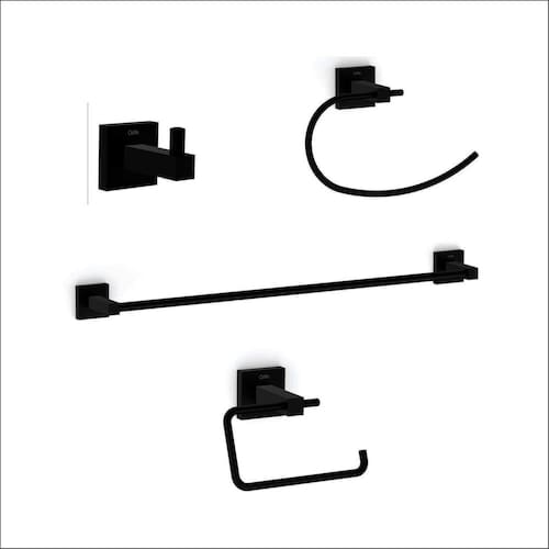 O Kit Acessorios 4 Pecas New Elite Preto Matte Celite é perfeit0 para quem busca qualidade e um design moderno, unido sofisticação e praticidade para seu banheiro.