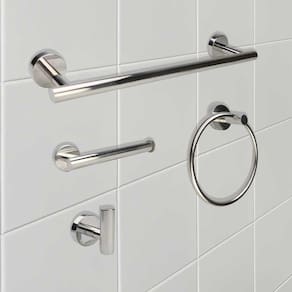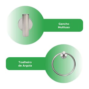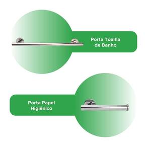 Itens inclusos: - 1x Porta toalha de banho - 1x Porta papel higiênico - 1x Gancho multiúso - 1x Toalheiro de argola - Kit Parafusos e buchas para instalação