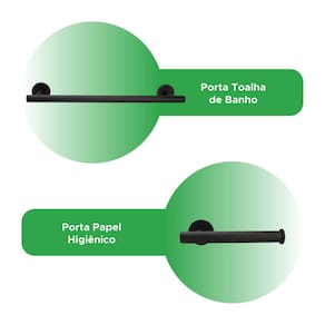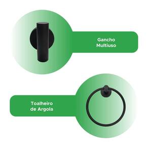 Itens inclusos: - 1x Porta toalha de banho - 1x Porta papel higiênico - 1x Gancho multiúso - 1x Toalheiro de argola - Kit Parafusos e buchas para instalação