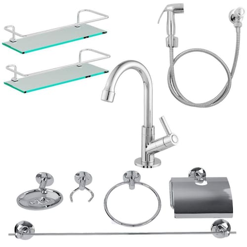 Kit acessórios aço inox 9 pçs -torneira + ducha + 2 psp reto Seja bem vindo a loja oficial minhacazza
