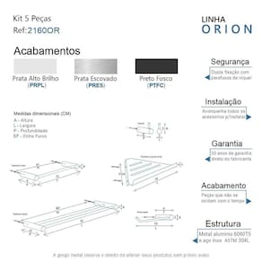 O kit de acessórios para banheiro da linha Orion possui um design versátil, são peças que se destacam com minimalismo. Além de decorar, organiza com funcionalidade o banheiro. Criado em metais nobres com uma qualidade que abrange áreas litorâneas e possui a de um acabamento muito resistente. Agora é só você adquirir estes lindos acessórios e fazer o seu projeto se tornar realidade com um banheiro prático para toda a sua família. Características Fabricado em metal alumínio e aço inox. Disponível no Prata Alto Brilho, Escovado e Preto Fosco. Pode ser instalado em parede, azulejo e porcelanato. Benefícios Fixação prática e segura com parafusos e buchas inclusos. O produto não possui nenhum detalhe em plástico ABS . Fácil higienização, ideal para locais que exigem limpeza constante. Aproveitamento inteligente do espaço, ideal para ambientes compactos. Resistente à corrosão e luz solar. Itens ENVIADOS: 1 cabide, 1 porta papel higiênico, 1 toalheiro rosto 30cm, 1 toalheiro duplo 60cm, 1 prateleira suporte canto 30cm, kit de parafusos e manual instrução instalação. Instalação INTELIGENTE Ao 1º furo, use uma broca medida menor, após use a medida correta e finalize, vai ajudar na precisão da fixação da bucha principalmente em azulejos e porcelanato. Marca: Não Informado