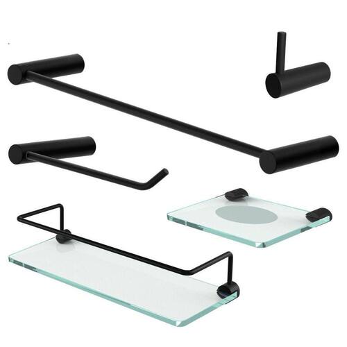 - linha: orion - modelo: kit 5 peças - cor e acabamento: preto fosco acetinado - tecnologia: parafusos com dupla fixação - dimensões: vide imagem - itens enviados: 1 cabide, 1 papeleira, 1 porta toalha banho 50cm, 1 saboneteira fenda, 1 prateleira fenda proteção e kit de acessórios para instalação. enviamos manual de instalação .
