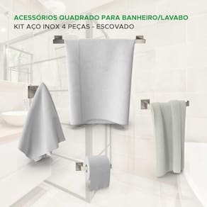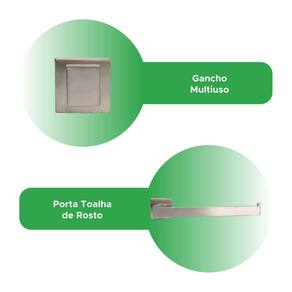 Itens inclusos: - 1x Porta toalha de banho - 1x Porta papel higiênico - 1x Porta toalha de rosto - 1x Gancho para roupa - Kit Parafusos e buchas para instalação