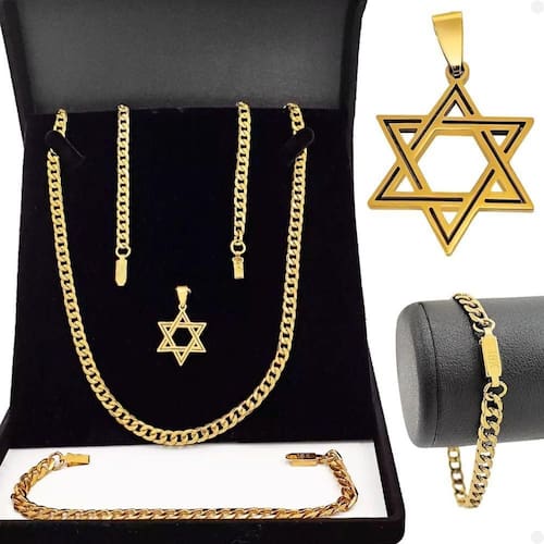 Kit Acessórios Banhados: Corrente + Pingente Estrela de Davi + Pulseira