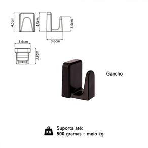 Informações técnicas: Cor: Preto Acabamento: Brilhante Composição: Plástico PP e PSAI Fixação: - Saboneteira, papeleira e gancho: adesiva - Porta-shampoo: encaixe Fixação adesiva ideal para superfícies de: Vidro, porcelanatos, granitos, pisos cerâmicos e mármores Dimensões C x A x L : - Porta Shampoo: 30cm x 4,5cm x 10cm - Saboneteira: 14cm x 9,7cm x 3,9cm - Porta Papel Higiênico: 13,7cm x 3,9cm x 8,8cm - Gancho: 3,8cm x 4,5cm x 3,6cm