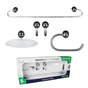 Kit Acessórios Para Banheiro 5 Peças Alumínio Abs Cromado