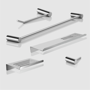 O kit de acessórios para banheiro da linha Orion possui um design versátil, são peças que se destacam com minimalismo.