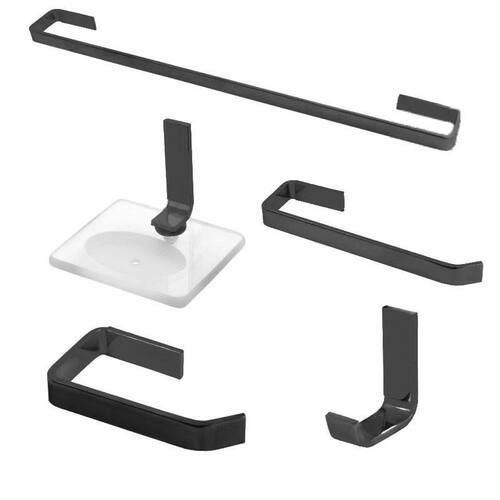 Kit Acessórios Para Banheiro Athena Em Vergalhão Preto Material: Aço inox Cor: Preto : 5 anos Fixação: Parafusos e buchas Composição: 01 papeleira 01 saboneteira 01 porta toalha banho 45 cm 01 porta toalha rosto 01 cabide Buchas e parafusos Fixação dupla