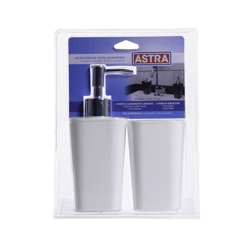 DESCRIÇÃO DO PRODUTOProcurando deixar a sua bancada de banheiro mais organizada e funcional O Kit acessórios para banheiro com 2 peças da Astra, além de higiênico, este kit é composto por itens produzidos em plásticos, ideal para ambientes úmidos como banheiros.. 3376-1600CEL: 43. 99105-8204INSTA: saomarcosdeposito END: Av. Leste Oeste, 2555w, Londrina-PR