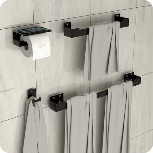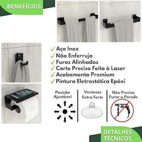 Com um design minimalista, o preferido pelos arquitetos nos últimos tempos, o Kit Acessórios é fabricado utilizando aço inox com acabamento em Pintura Eletrostática Epóxi proporcionando maior durabilidade, resistência e garantindo que não ocorrerá oxidação nem ferrugem.
