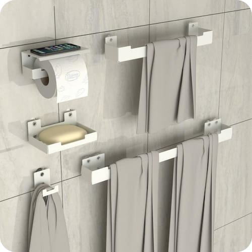 Com um design minimalista, o preferido pelos arquitetos nos últimos tempos, o Kit Acessórios é fabricado utilizando aço inox com acabamento em Pintura Eletrostática Epóxi proporcionando maior durabilidade, resistência e garantindo que não ocorrerá oxidação nem ferrugem.
