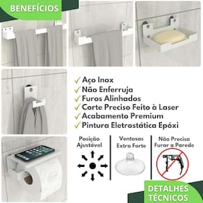 O Kit Acessórios Com Ventosa possibilita a mudança de local quantas vezes você desejar, ao contrário dos adesivos que só podem ser colados uma vez e com o passar do tempo descolam da superfície, as ventosas são projetadas para ter uma boa aderência em ambientes molhados.