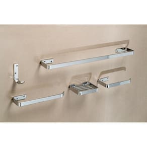 Ter um banheiro organizado traz leveza e praticidade para sua rotina. Para que o banheiro fique em ordem, é necessário o uso de alguns produtos. O Kit de acessórios é indispensável. Produzido em alumínio maciço com acabamento cromado de alta qualidade, não havendo problemas com ferrugem, com um designer clean e sofisticado, valorizando o ambiente do seu banheiro, melhor custo benefício. Todos parafusos de fixação são de aço inox no acabamento semelhante da peça garantindo que não haverá problemas com ferrugem. Acabamento: Cromado. Material: Barra chata de Alumínio maciço Largura da barra chata:1.6Cm Espessura da barra chata: 3.4mm Quantidade de Peças do Kit: 5. Itens Inclusos: 1 Porta Tolhas de Rosto 1 Porta Tolhas de Banho 1 Gancho 1 Saboneteira 1 Porta Papel Higiênico Todos os itens acompanham parafusos e buchas de fixação. MEDIDAS. Gancho: Altura 6cm x Profundidade 5cm x Largura 1.6cm Porta Papel Higiênico: Altura 1.6cm x Profundidade 7cm x Largura 14cm Porta Toalha de Rosto: Altura 1.6cm x Profundidade 6cm x Largura 21cm Porta Toalha de Banho: Altura 1.6cm x Profundidade 6cm x Largura 44cm Porta Sabonete: Altura 1.6cm x Profundidade 8cm x Largura 10cm Marca: Não Informado Ean: 7899772115806