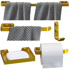 Material Reforçado – Aço carbono de alta resistência, ideal para uso diário Não Enferruja Fácil – Acabamento premium que protege contra umidade e corrosão Design Clean e Sofisticado – Cor Dourada para um visual moderno e elegante Instalação Prática – Furos alinhados, parafusos sextavados e tampas de acabamento para um acabamento impecável Kit com 5 Peças – Tudo o que você precisa para um banheiro funcional e sofisticado
