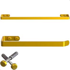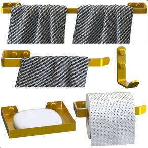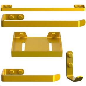 Material Reforçado – Aço carbono de alta resistência, ideal para uso diário Não Enferruja Fácil – Acabamento premium que protege contra umidade e corrosão Design Clean e Sofisticado – Cor Dourada para um visual moderno e elegante Instalação Prática – Furos alinhados, parafusos sextavados e tampas de acabamento para um acabamento impecável Kit com 5 Peças – Tudo o que você precisa para um banheiro funcional e sofisticado