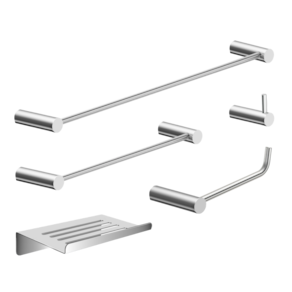O kit de acessórios para banheiro da linha Orion possui um design versátil, são peças que se destacam com minimalismo.