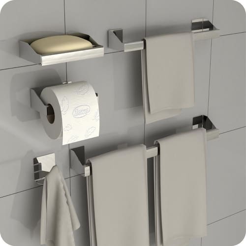 Com um design minimalista, o preferido pelos arquitetos nos últimos tempos, o Kit Acessórios Para Banheiro é fabricado utilizando aço inox com acabamento polido em alto brilho proporcionando maior durabilidade, resistência e garantindo que não ocorrerá oxidação nem ferrugem.