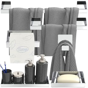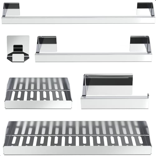 O Kit Acessórios Para Banheiro Dupla Face foi projetado para quem não quer furar a parede e busca por qualidade na fixação e boa aderência em ambientes molhados. Prezando pela sofisticação e elegância, cada traço do produto foi cuidadosamente desenhado para deixar seu banheiro com um visual clean e sofisticado. Com um design minimalista, o preferido pelos arquitetos nos últimos tempos, o Kit Acessórios Para Banheiro é fabricado utilizando aço inox com acabamento polido em alto brilho proporcionando maior durabilidade, resistência e garantindo que não ocorrerá oxidação nem ferrugem. A fixação é feita com fita dupla face da marca 3M produzida sob medida personalizada para o produto, garantindo mais firmeza e estabilidade. Após remover a fita e colar o produto na parede, aguarde 20minutos e em seguida o produto já pode ser utilizado. Seu processo de acabamento é feito em polimento de alta temperatura, o que garante um alto padrão de brilho, dando um toque especial na decoração do seu banheiro. BENEFÍCIOS Fixação: Fita Dupla Face Acabamento Premium: Corte Realizado à Laser Material de Aço Inox Resistente a Água Não Enferruja e não sofre oxidação ESPECIFICAÇÕES TÉCNICAS Material: Aço Inox Acabamento: Polido em Alta Temperatura Cor: Alto Brilho Quantidade de Peças do Kit: 06 MEDIDAS Porta Toalha de Banho: 5cm x 44cm x 5,5cm Porta Toalha de Rosto: 5cm x 30cm x 5,5cm Porta Papel Higiênico: 9cm x 15cm x 6cm Porta Shampoo: 3,5cm x 25cm x 7,5cm Gancho: 3,5cm x 3cm x 4,5cm Saboneteira: 3,5cm x 12cm x 7,5cm ITENS INCLUSOS 1 Porta Toalha de Banho 1 Porta Toalha de Rosto 1 Porta Papel Higiênico 1 Porta Shampoo 1 Gancho 1 Saboneteira Todos os itens são enviados com fita dupla face da marca 3M. Marca: S3GShop