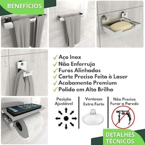 Ótimo para fixar em superfícies lisas, vidros de box e espelhos