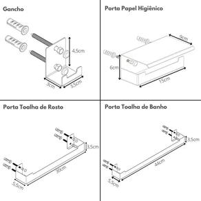 Porta Toalha de Rosto: 5cm x 30cm x 5,5cm