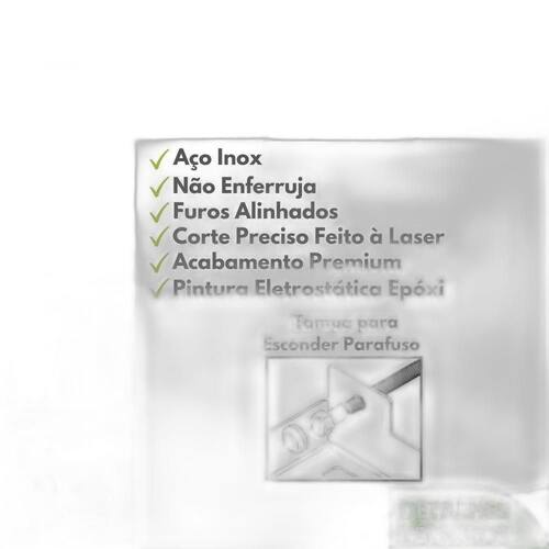 BENEFÍCIOS Fixação forte: Sistema duplo de fixação Acabamento Premium: Corte Realizado à Laser Material de Aço Inox Resistente a Água Não Enferruja e não sofre oxidação Furos alinhados com parafusos sextavados, facilitando o acesso da ferramenta, tornando a instalação muito simples e rápida Tampa de acabamento para esconder as cabeças dos parafusos