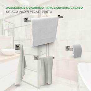 Kit Acessórios Para Banheiro Quadrado Aço Inox Cromado 4 Pçs