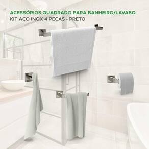 Itens inclusos: - 1x Porta toalha de banho - 1x Porta papel higiênico - 1x Porta toalha de rosto - 1x Gancho para roupa - Kit Parafusos e buchas para instalação