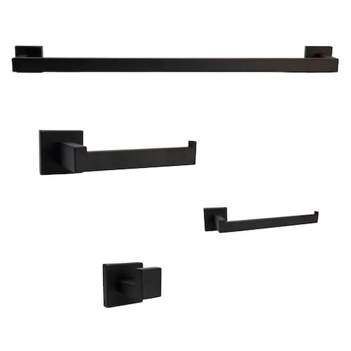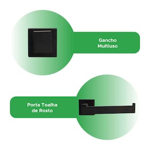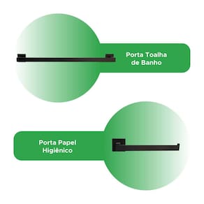 Itens inclusos: - 1x Porta toalha de banho - 1x Porta papel higiênico - 1x Porta toalha de rosto - 1x Gancho para roupa - Kit Parafusos e buchas para instalação