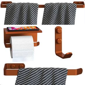 Transforme seu banheiro em um ambiente organizado, moderno e sofisticado com o Kit Acessórios Para Banheiro Rose Gold 4 Peças Max. Produzido em aço carbono de alta qualidade, com pintura eletrostática epóxi Rose Gold, este kit une resistência, durabilidade e elegância para o seu dia a dia.