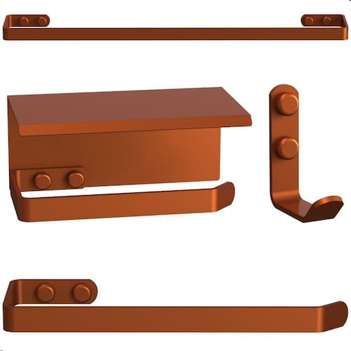 Transforme seu banheiro em um ambiente organizado, moderno e sofisticado com o Kit Acessórios Para Banheiro Rose Gold 4 Peças Max. Produzido em aço carbono de alta qualidade, com pintura eletrostática epóxi Rose Gold, este kit une resistência, durabilidade e elegância para o seu dia a dia.