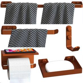 Transforme seu banheiro em um ambiente organizado, moderno e sofisticado com o Kit Acessórios Para Banheiro Rose Gold 5 Peças Max. Produzido em aço carbono de alta qualidade, com pintura eletrostática epóxi Rose Gold, este kit une resistência, durabilidade e elegância para o seu dia a dia.