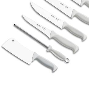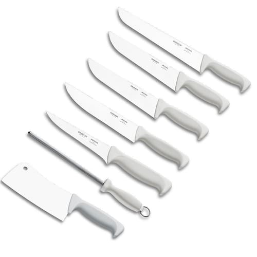 Os utensílios Brinox para açougueiro foram desenvolvidos com a forma perfeita para tornar o trabalho diário mais rápido e prático. Este kit açougueiro 7 peças é ideal para você que precisa equipar o seu negócio com acessórios de qualidade para auxiliar nos cortes de carne, já que suas facas possuem lâminas longas e fios aguçados, permitindo cortar e fatiar os mais diversos tipos de carne. Todos os itens deste kit são inteiramente confeccionados em aço inox, proporcionando maior higiene ao utensílio, além de possuir um acabamento sofisticado e alto brilho. Os cabos desses acessórios para açougue são fabricados em polipropileno com proteção antibacteriana e desenho ergonômico, tornando o equipamento fácil de limpar e ideal para ser usado em açougue.