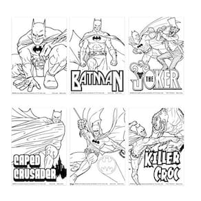 - Conjunto completo de miniartes para crianças: inclui 6 páginas para colorir, 6 marcadores, 6 lápis de cor e uma folha de adesivos com o tema do Batman.