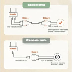 Kit com dois aptadores mais dois cabos de rede internet rj45 de 1 um metro cada. Duplica o sinal da sua internet de maneira fácil e de simples instalação. Funções especiais: - permite converter um ponto de rede rj-45 em dois pontos - funciona como um suíte, permite interligar até 2 aparelhos na internet - permite que dois computadores compartilhem a mesma porta ethernet do modem - conectores resistentes, o que evita quebras durante a instalação Atenção: Para uso correto dos adaptadores, fazer a ligação conforme a segunda foto do anúncio A adaptador duplicador cabo de rede rj45 - conector: 3 x rj45 fêmea - fiação: paralela de 8 pinos - taxa de transferência: 10/100mbps - compatível com: cat5/cat6 - material: plástico de alta qualidade - cor: preta - tamanho: 45x35x20mm B cabo de rede 1 metro - comprimento: 1 metro - cor: azul ou cinza - conectores: rj45 - padrão: cat5e - cabo: crimpado pronto para uso - revestimento: pvc de alta performance - isolamento: polietileno de alta densidade Conteúdo da embalagem: 02x adaptador duplicador para cabo de rede rj45 fêmeas 02x cabo de rede patch cord cat5e rj45 1 metro