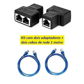 Kit com dois aptadores mais dois cabos de rede internet rj45 de 1 um metro cada. Duplica o sinal da sua internet de maneira fácil e de simples instalação. Funções especiais: - permite converter um ponto de rede rj-45 em dois pontos - funciona como um suíte, permite interligar até 2 aparelhos na internet - permite que dois computadores compartilhem a mesma porta ethernet do modem - conectores resistentes, o que evita quebras durante a instalação Atenção: Para uso correto dos adaptadores, fazer a ligação conforme a segunda foto do anúncio A adaptador duplicador cabo de rede rj45 - conector: 3 x rj45 fêmea - fiação: paralela de 8 pinos - taxa de transferência: 10/100mbps - compatível com: cat5/cat6 - material: plástico de alta qualidade - cor: preta - tamanho: 45x35x20mm B cabo de rede 1 metro - comprimento: 1 metro - cor: azul ou cinza - conectores: rj45 - padrão: cat5e - cabo: crimpado pronto para uso - revestimento: pvc de alta performance - isolamento: polietileno de alta densidade Conteúdo da embalagem: 02x adaptador duplicador para cabo de rede rj45 fêmeas 02x cabo de rede patch cord cat5e rj45 1 metro