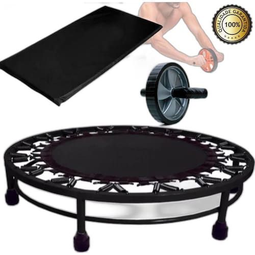Kit aeróbico mini jump 32 molas+ colchonete + roda abdominal Detalhes do produto Mini jump profissional 32 molas com aro de reforço - cheers O jump profissional - cama elástica trampolim é ideal para o uso em academias, condomínios e residências, além de queimar calorias de forma eficiente. Confeccionado em tubo redondo de aço com aro de reforço, possui pintura em epóxi e tem os pé fixos . São 32 molas para você manter o corpo em forma de uma maneira divertida e saudável. As molas são fixadas á tela por 16 suportes de aço. Pés em pvc antiderrapantes removíveis que se encaixam. O colchonete profissional 90 x 45 x 2 cm é ideal para ter mais conforto na hora de fazer seus exercícios, praticar yoga, pilates ou qualquer exercício funcional. Ele é super prático, fácil de guardar, e é fabricado em espuma de 20 mm com densidade d16, sendo confortável na medida certa. No exterior, é revestido em napa lavável e impermeável, o que facilita quando houver necessidade de higienização e no excesso de suor na prática de exercícios. Você vai se sentir mais confortável para fazer abdominais e outras atividades físicas, além de seu uso ser indispensável para proteger a coluna e evitar lesões. Ações e benefícios: - confortável com enchimento em espuma 20mm de densidade d16 - leve e prático para transporte e armazenamento - tecido lavável e impermeável garante durabilidade do produto - ideal para quaisquer exercícios, prática de yoga, pilates e outras atividades Indicações: - prevenir a coluna e o corpo de lesões em exercícios no solo - ideal para ter mais conforto na prática de quaisquer atividades esportivas Dados técnicos: Tamanho: 90 x 45 x 2 cm Marca: fitness store Material: revestimento em napa com enchimento em espuma 30mm de densidade d23 : 3 meses contra defeito de fabricação Cor: preto Indicações Ideal para o uso em academias, condomínios e residências. Indicado para . Kit composto por: 1- mini jump 1- colchonete 90 x 45 x 2 cm 1- roda abdominal Marca: Não Informado