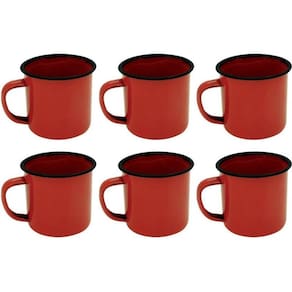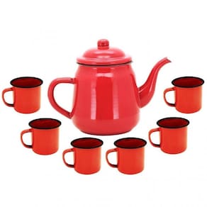 Bule Ágata Esmaltado 1,7 ML + 6 Canecas de 90ML Vermelho