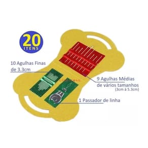 Agulheiro Cesto Cestinha C/ 1 passador de linha.Kit com 19 agulhas e um passador de linha é uma boa dica para quem trabalha com artesanato, patchwork, bordado e costuras no geral.Contém agulhas do número 6. Agulha pequena. Tamanho 40 mm. Marca: Produto Importado origem CHINA.Composição das agulhas: Aço Niquelado.Material Cesto: Papel.