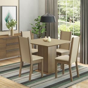 - Itens Inclusos: 1 mesa quadrada em pedestal com tampo de madeira e 4 cadeiras